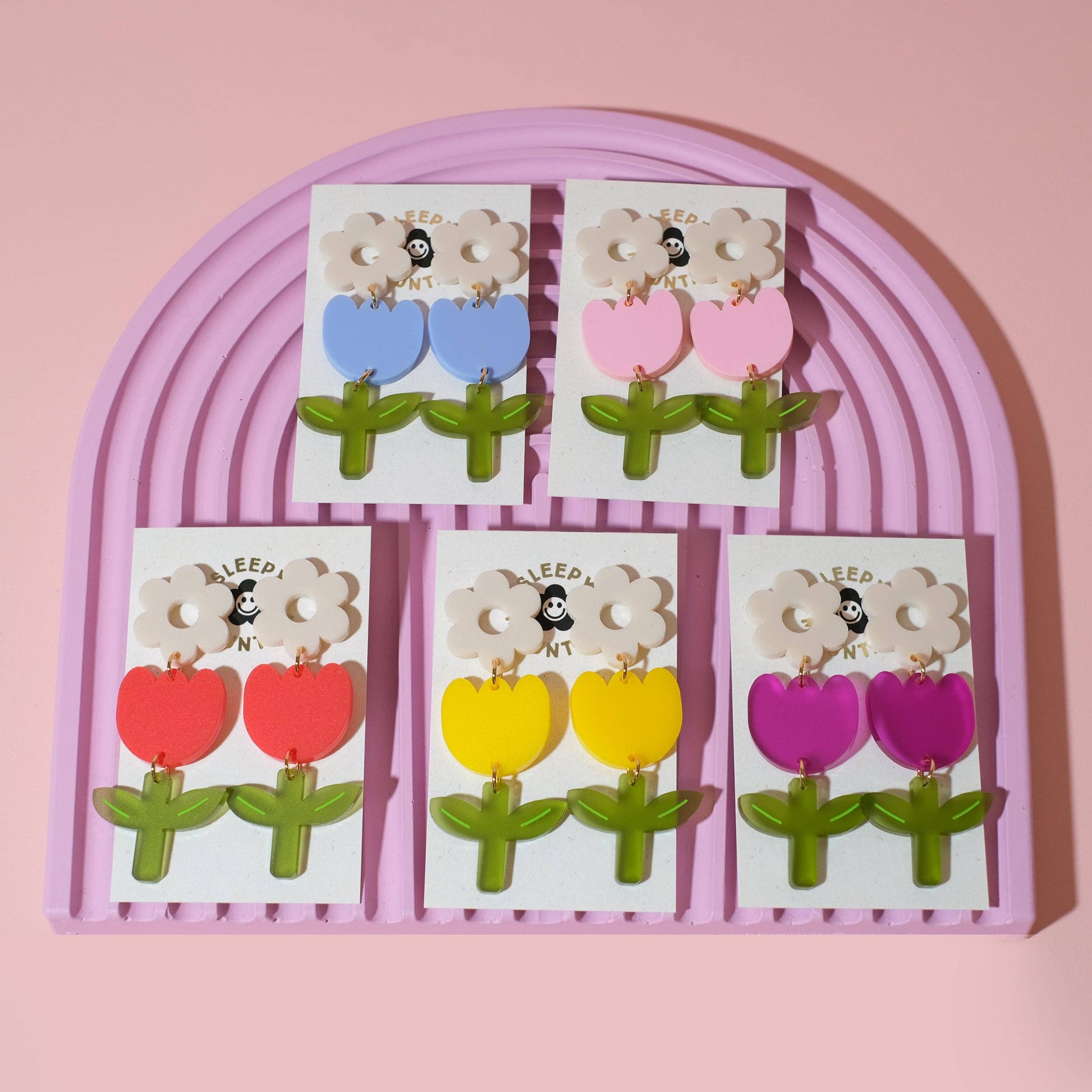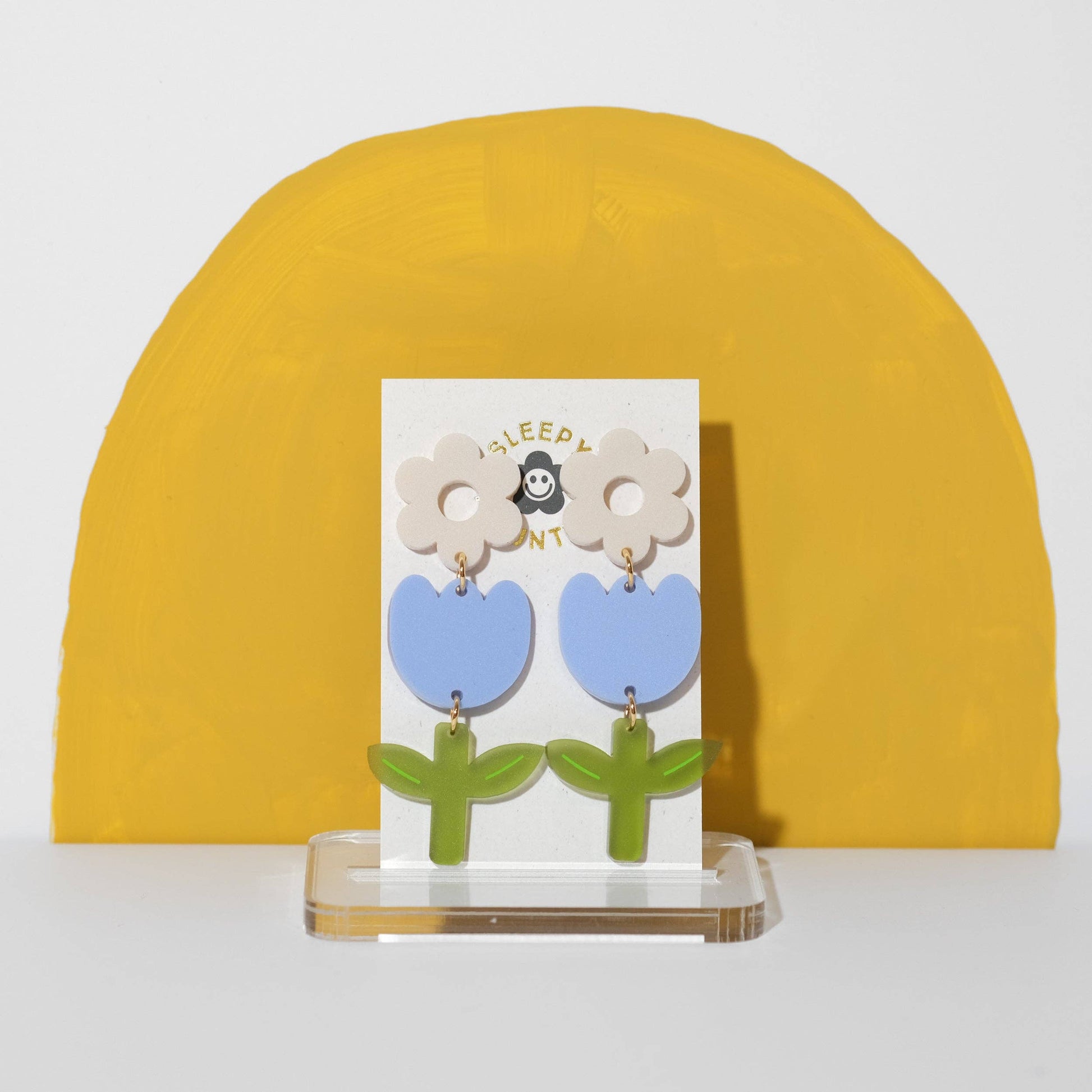 Step into the world of colorful and modern jewelry with Sleepy Mountain's Periwinkle Tulip Earrings. These dangle earrings, in a delightful shade of periwinkle blue, are inspired by the elegance of tulips. They are a perfect addition to your collection, bringing a fun and vibrant touch to any outfit. Created by Thaís, a renowned product designer based in Seattle, these earrings reflect a blend of style and charm.
